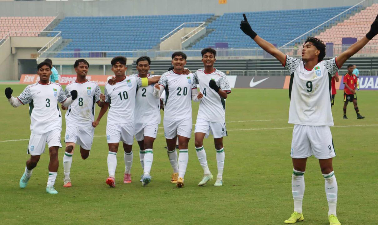 এএফসি অনূর্ধ্ব-১৭ টুর্নামেন্টের বাছাইয়ে দুর্দান্ত সূচনা করেছে। গ্রুপে নিজেদের প্রথম ম্যাচে তিমুরলেস্তেকে হারিয়েছে ৫-০ গোলে। রিফাত কাজী, বায়েজিদ বোস্তামি, আকাশ মাহদু একটি ও মানিক জোড়া গোল করেন। চীনের চংকিনে ঠান্ডা আবহাওয়ার মধ্যেও বাংলাদেশের ফুটবলাররা দারুণ খেলেছে। বড় জয় দিয়ে টুর্নামেন্ট শুরু করায় বেশ তৃপ্ত বাংলাদেশের কোচ গোলাম রব্বানী ছোটন।