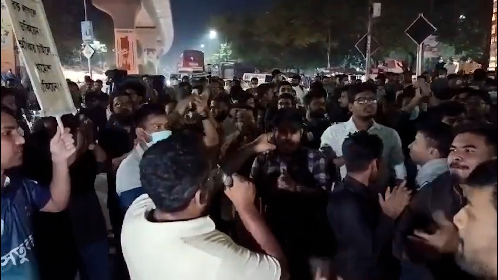 ৪৭ তম বিসিএসের লিখিত পরীক্ষা পেছানোর দাবিতে শাহবাগে অবরোধ। ছবি: ক্যাপটেন্স টিভি।