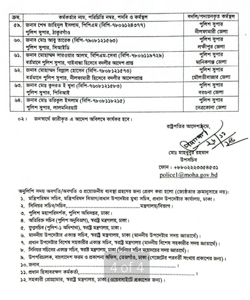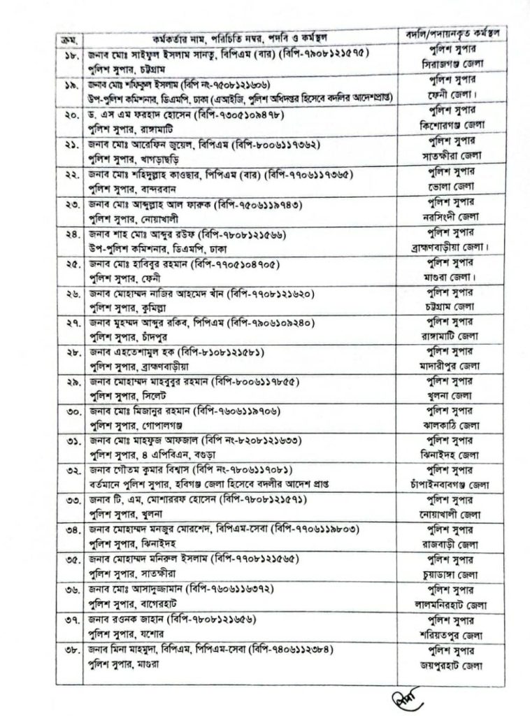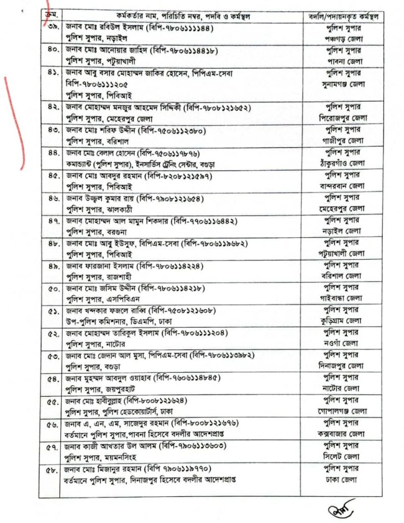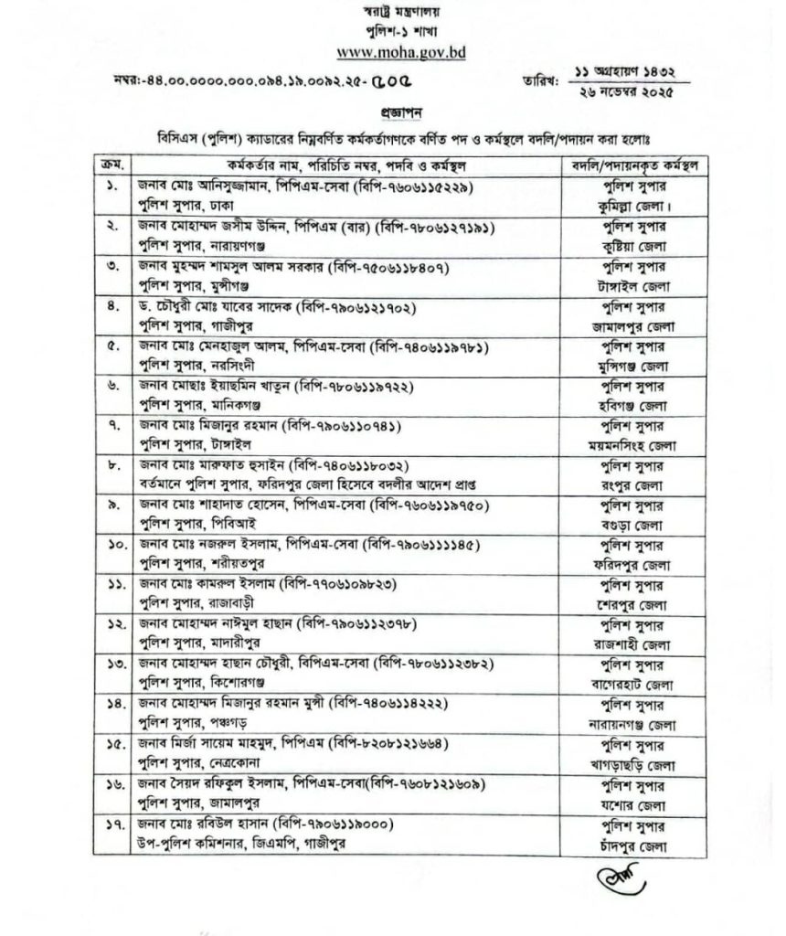 দেশের ৬৪ জেলায় নতুন পুলিশ সুপারদের (এসপি) পদায়নের প্রজ্ঞাপন জারি করেছে অন্তর্বর্তী সরকার।