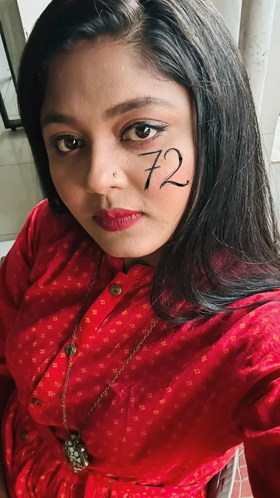 অভিনেত্রী মৌসুমী হামিদ গালে লিখেছেন ‘৭২’
