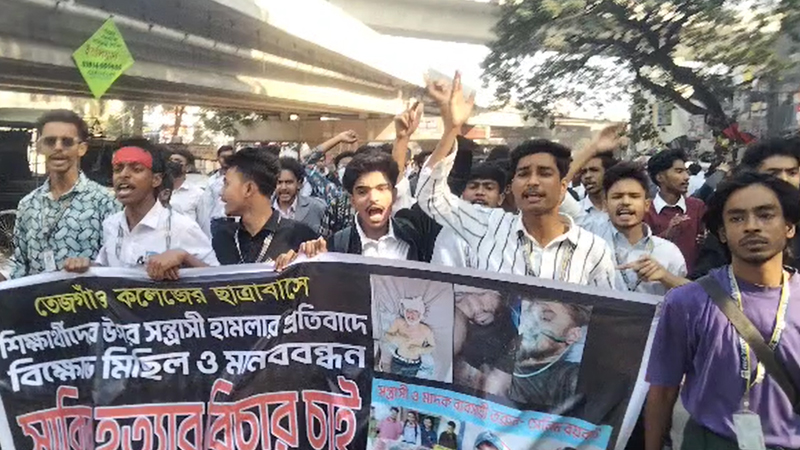 এর আগে, বৃহস্পতিবার তেজগাঁও কলেজের ছাত্রাবাসে দুই পক্ষের সংঘর্ষে আহত এক শিক্ষার্থীর মৃত্যু কেন্দ্র করে সড়ক অবরোধ করে রাখে শিক্ষার্থীরা। বেলা ১১টা থেকে শিক্ষার্থীদের বিক্ষোভ শুরু হলে ওই এলাকা ও আশপাশে তীব্র যানজট দেখা দেয়।