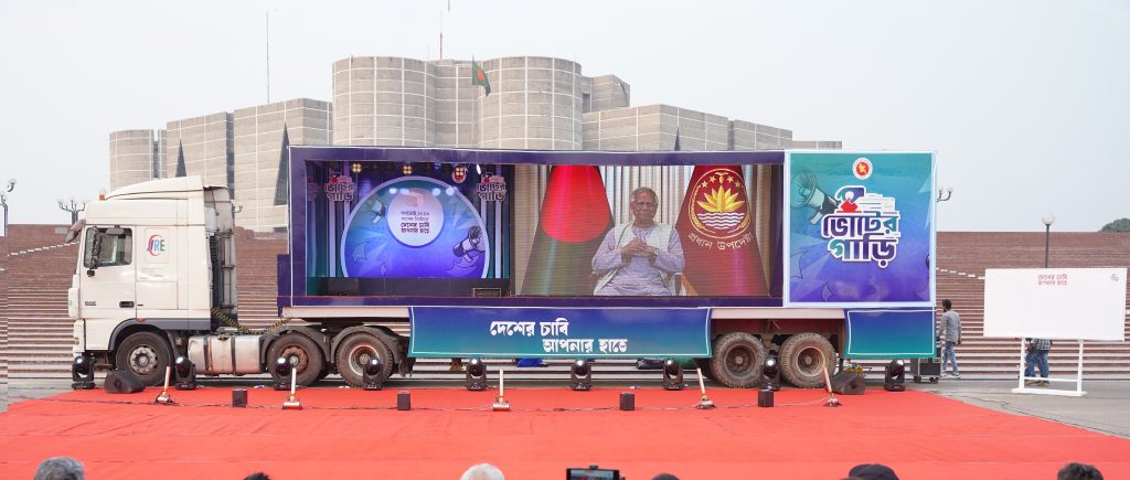 ত্রয়োদশ সংসদ নির্বাচন ও জুলাই জাতীয় সনদের বিষয়ে গণভোটের বিষয়ে সারাদেশে প্রচারণার লক্ষ্যে যাত্রা শুরু করেছে দশটি ভোটের গাড়ি- সুপার ক্যারাভান।