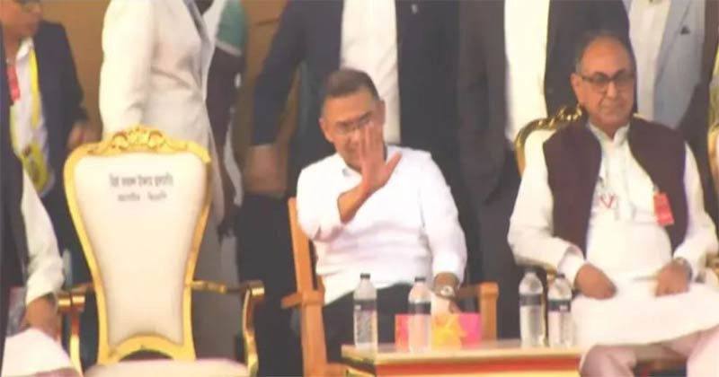 সভা মঞ্চে স্পেশাল আসন ছেড়ে সাধারণ চেয়ারে বসলেন তারেক রহমান। ছবি: সংগৃহীত।