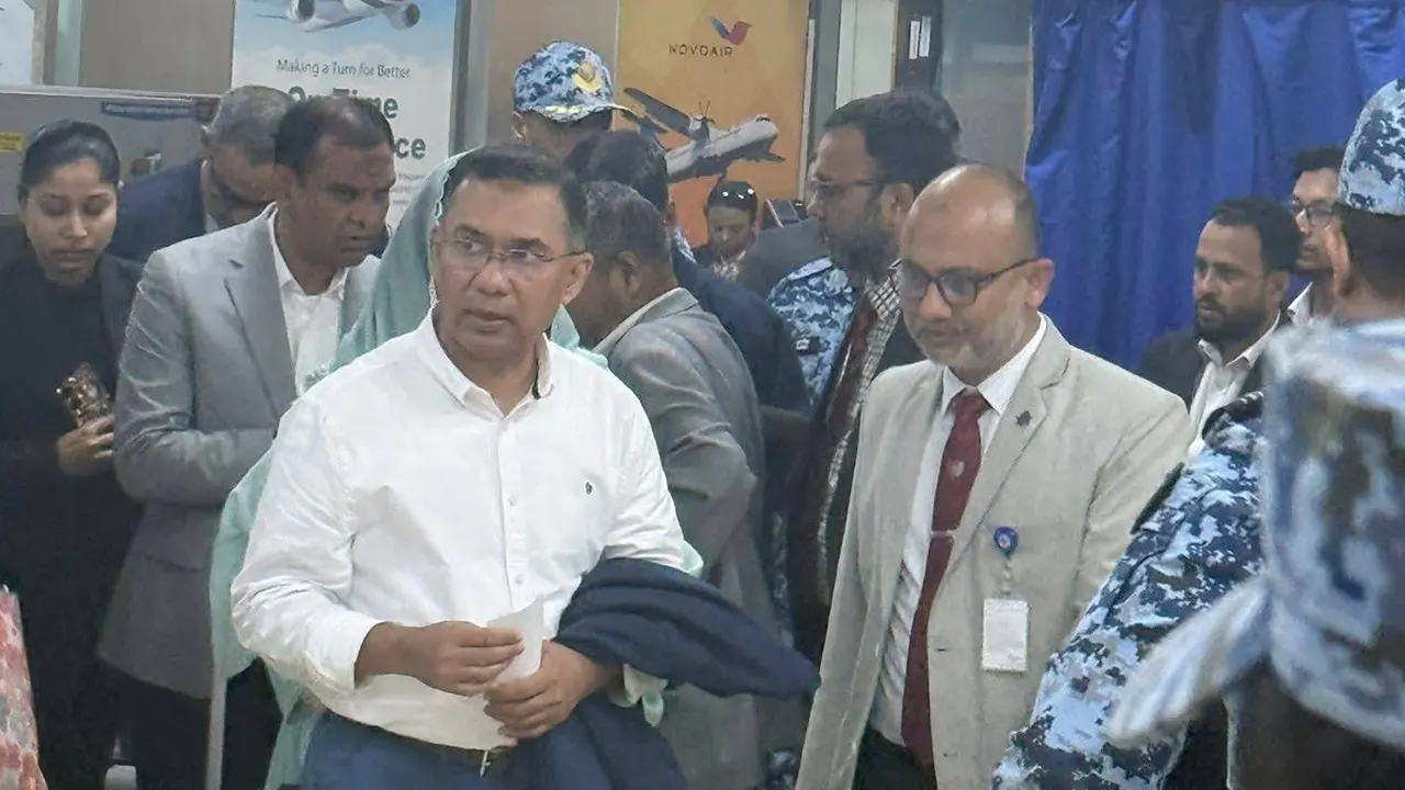 বিমানবন্দরে তারেক রহমান। ছবি: সংগৃহীত।