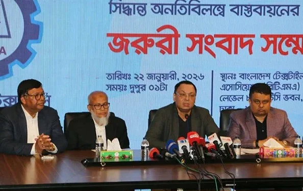 তিনি আরও বলেন, সমস্যা সমাধানে বিভিন্ন সরকারি দপ্তরে ঘুরেও কোনো কার্যকর সমাধান পাওয়া যায়নি। সব মন্ত্রণালয় ও সংশ্লিষ্ট বিভাগে আমরা গিয়েছি, কিন্তু সবাই পিলো পাসিংয়ের মতো দায়িত্ব একে অন্যের ঘাড়ে চাপিয়ে দিচ্ছে। বাস্তব কোনো সিদ্ধান্ত আসছে না। বিষয়টি নিয়ে নীতিগত সহায়তা ও শিল্পবান্ধব সিদ্ধান্ত না এলে পুরো খাত আরও গভীর সংকটে পড়বে।