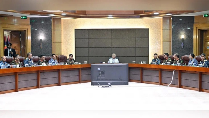 সভার শুরুতে প্রধান উপদেষ্টা দেশের বিভিন্ন প্রয়োজনে সশস্ত্র বাহিনীর গৌরবোজ্জ্বল ও দায়িত্বশীল ভূমিকার কথা উল্লেখ করেন। একইসঙ্গে দীর্ঘ সময় ধরে ধৈর্য ও পেশাদারিত্বের সঙ্গে দেশের আইন-শৃঙ্খলা বজায় রাখার জন্য সশস্ত্র বাহিনীর প্রতি আন্তরিক ধন্যবাদ ও কৃতজ্ঞতা প্রকাশ করেন।