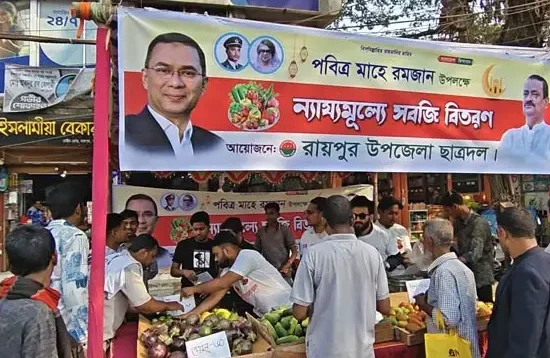 লক্ষ্মীপুরের রায়পুর উপজেলা ছাত্রদল রমাদান উপলক্ষ্যে ন্যায্যমূল্যে সবজি বিক্রি করছে। পণ্যের মূল্যস্ফীতি নিয়ন্ত্রণ ও সাধারণ মানুষের পাশে দাঁড়াতে এ উদ্যোগ নেয়া হয়েছে বলে জানিয়েছে দলটির নেতারা। রোববার (২২ ফেব্রুয়ারি) দুপুরে পৌর শহরের ট্যাফিক চত্বরে এ ন্যায্যমূল্যের অস্থায়ী দোকানের উদ্বোধন করা হয়।
