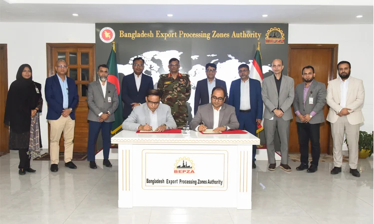 এ লক্ষ্যে গতকাল ঢাকাস্থ বেপজা কমপ্লেক্সে চুক্তি স্বাক্ষর অনুষ্ঠান অনুষ্ঠিত হয়। বেপজার পক্ষে নির্বাহী পরিচালক (বিনিয়োগ উন্নয়ন) মো. তানভীর হোসেন এবং বিনিয়োগকারী প্রতিষ্ঠানের পক্ষে ইন্টিগ্রেটেড কম্পোজিট ইন্ডাস্ট্রিজ লিমিটেডের চেয়ারম্যান কামরুল হাসান চৌধুরী চুক্তিতে স্বাক্ষর করেন।