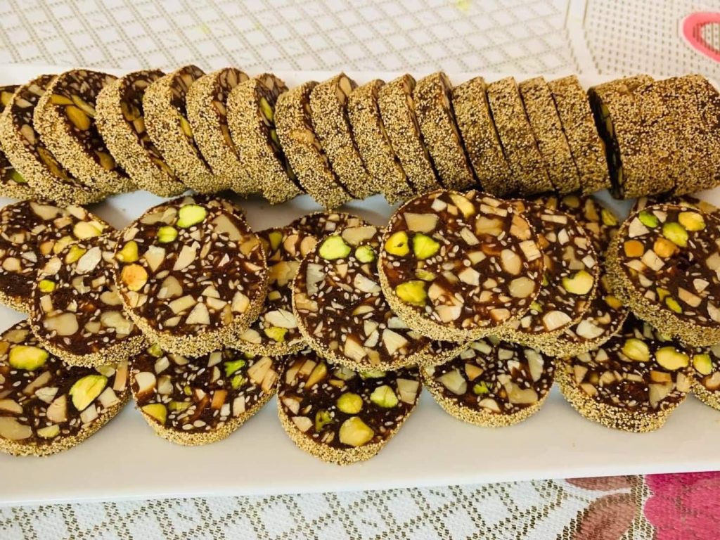 খেজুর- ২০০ গ্রাম,কাঠবাদাম- ১০০ গ্রাম,কাজু বাদাম- ১০০ গ্রাম,পেস্তা বাদাম- ৫০ গ্রাম,আখরোট- ৫০ গ্রাম,ভাজা তিল- ৫০ গ্রাম,কিশমিশ- ৫০ গ্রাম,ঘি- ৪ টেবিল চামচ,গুঁড়া দুধ- ৪ টেবিল চামচ।