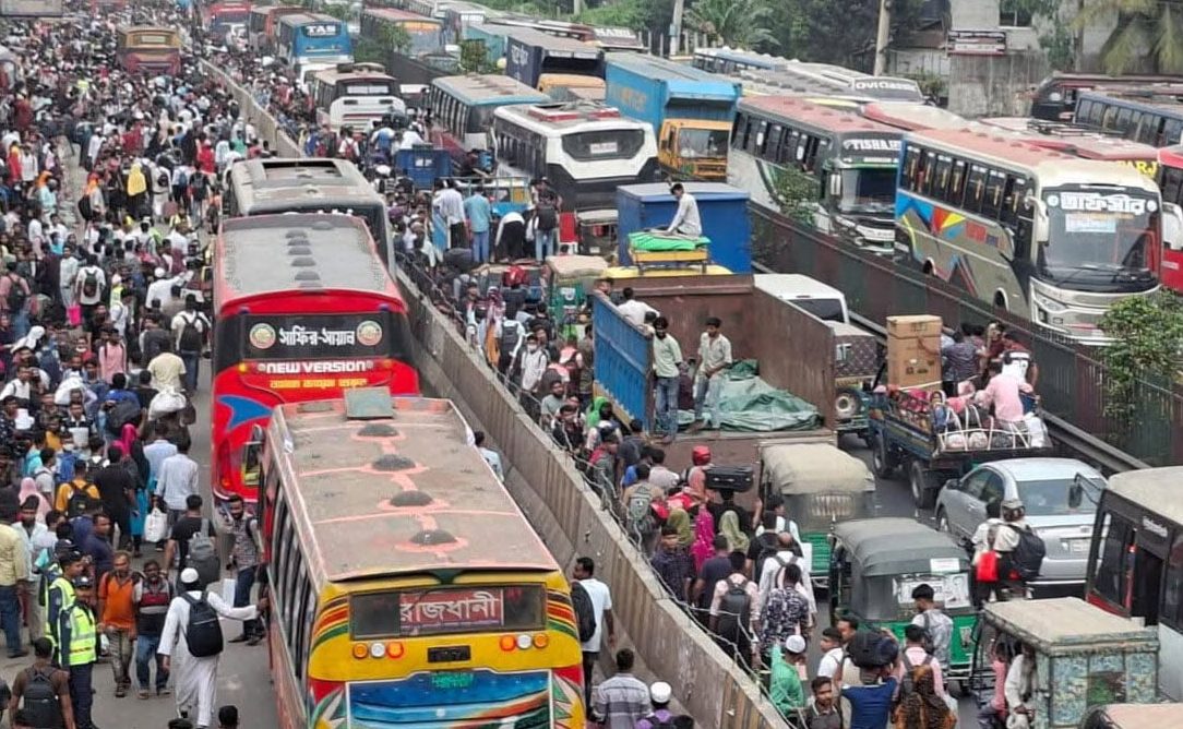 জানা গেছে, গাজীপুরের ঢাকা-টাঙ্গাইল মহাসড়কের চন্দ্রা বাস টার্মিনাল এলাকায় বিকেল সোয়া ৪টার দিকে বৃষ্টি উপেক্ষা করেই সড়কে নেমেছে হাজার হাজার যাত্রী। উত্তরাঞ্চলের ২৬ জেলার প্রবেশদ্বার চন্দ্রা এলাকায় যাত্রীর চাপের সাথে সাথে ছোট বড় যানবাহনের চাপ বৃদ্ধি পেয়েছে কয়েকগুণ। এতে চন্দ্রা টার্মিনালে যানবাহন প্রবেশ বাধাগ্রস্ত হচ্ছে।