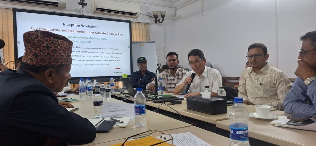 এই লক্ষ্যে সম্প্রতি আন্তর্জাতিক ধান গবেষণা ইনস্টিটিউট (ইরি), বাংলাদেশে প্রকল্পের ইনসেপশন ওয়ার্কশপের আয়োজন করা হয়। “জলবায়ু পরিবর্তনের চাপে ধানের উৎপাদনশীলতা ও স্থিতিস্থাপকতা: জলবায়ু-সহনশীল ধানের জাতের উপর আলোকপাতসহ বাংলাদেশ ও নেপালের মধ্যে পারস্পরিক জ্ঞান বিনিময়” শীর্ষক প্রকল্পের ইনসেপশন ওয়ার্কশপে প্রধান অতিথি হিসেবে উপস্থিত ছিলেন ইরি, বাংলাদেশ এবং ইরি নেপালের কান্ট্রি রিপ্রেজেন্টেটিভ ড. হোমনাথ ভান্ডারি। বিশেষ অতিথি হিসেবে উপস্থিত ছিলেন ইরি বাংলাদেশের সিনিয়র সায়েন্টিস্ট এবং রাইস ব্রিডার ড. মোহাম্মদ রফিকুল ইসলাম। সম্মানিত অতিথি হিসেবে উপস্থিত ছিলেন বাংলাদেশ ধান গবেষণা ইনস্টিটিউটের প্রধান বৈজ্ঞানিক কর্মকর্তা এবং প্ল্যান্ট ব্রিডিং ডিভিশনের প্রধান ড. কে এম ইফতেখারুদ্দৌলা এবং নেপালের ন্যাশনাল রাইস রিসার্চ প্রোগ্রামের কো-অর্ডিনেটর ড. মথুরা যাদব। কর্মশালাটির সভাপতিত্ব করেন জাপানের শেয়ার দ্য প্ল্যানেট অ্যাসোসিয়েশনের চেয়ারপার্সন তেতসুও সুতসুই।