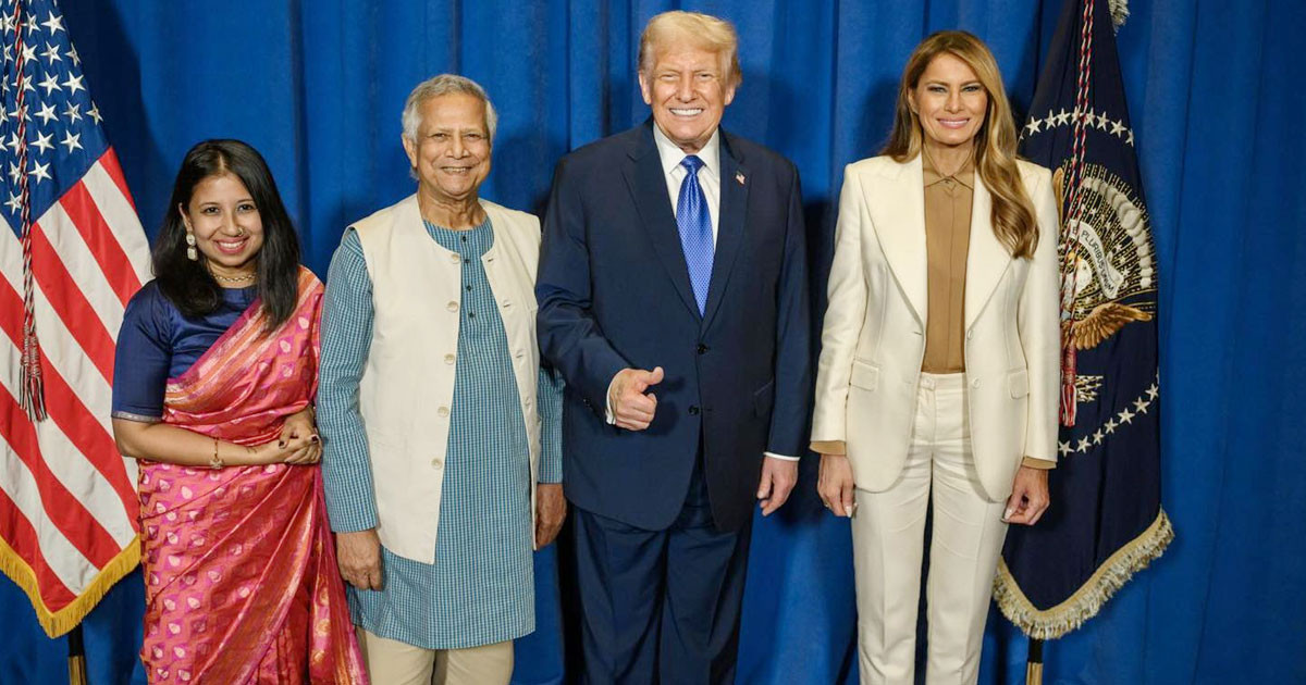 প্রেস উইংয়ের পোস্ট করা বার্তায় বলা হয়, ২৩ সেপ্টেম্বর নিউইয়র্কে মার্কিন প্রেসিডেন্ট আয়োজিত এক সংবর্ধনা অনুষ্ঠানে বাংলাদেশের প্রধান উপদেষ্টা অধ্যাপক মুহাম্মদ ইউনূস এবং তার মেয়ে দীনা ইউনূসের সঙ্গে ছবি তোলেন মার্কিন প্রেসিডেন্ট ডোনাল্ড ট্রাম্প এবং ফার্স্ট লেডি মেলানিয়া ট্রাম্প।