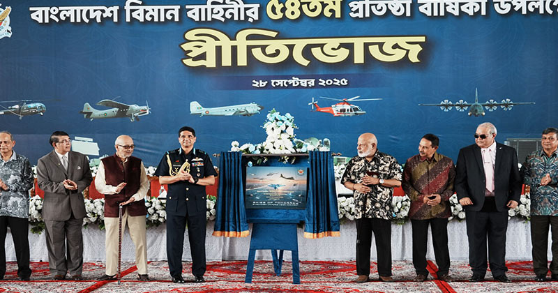 এতে বলা হয়েছে, ৫৪ বছর পূর্তি উপলক্ষে বিমান বাহিনীর সব ঘাঁটি, ইউনিট ও জাতিসংঘ শান্তিরক্ষা মিশনে নিয়োজিত কন্টিনজেন্টসমূহে ডকুমেন্টারি প্রদর্শন, মসজিদে দোয়া ও মোনাজাত এবং প্রীতিভোজের আয়োজন করা হয়। পাশাপাশি ঢাকার তেজগাঁওয়ে বিমান বাহিনী ঘাঁটি বাশারে প্রাক্তন বিমান বাহিনী প্রধানগণ ও বর্তমান কর্মকর্তাদের উপস্থিতিতে সমন্বিত প্রীতিভোজ করা হয়।