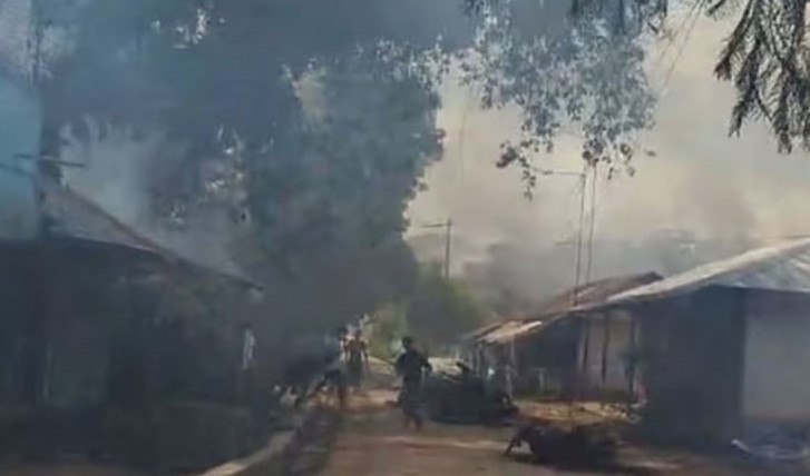 খাগড়াছড়ি-গুইমারার রমেসু বাজারের কয়েকটি দোকানে আগুন দেয়া হয়। ছবি: সংগৃহীত।