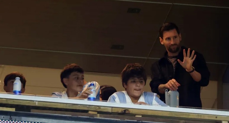 গ্যালারিতে বসে প্রিয় দলকে এমন দাপুটে খেলতে দেখে হাসিমুখে ছিলেন লিওনেল মেসি। পাশে জীবনসঙ্গী আন্তোনেল্লা রোকুজ্জো। গত ২৭ দিনে ইন্টার মায়ামির হয়ে সাতটি ম্যাচ খেলার পর আর্জেন্টাইন অধিনায়ককে পুরোপুরি বিশ্রাম দিয়েছে কোচ লিওনেল স্কালোনি। বেঞ্চেও রাখা হয়নি তাকে কারণ, তার দরকারই হয়নি।