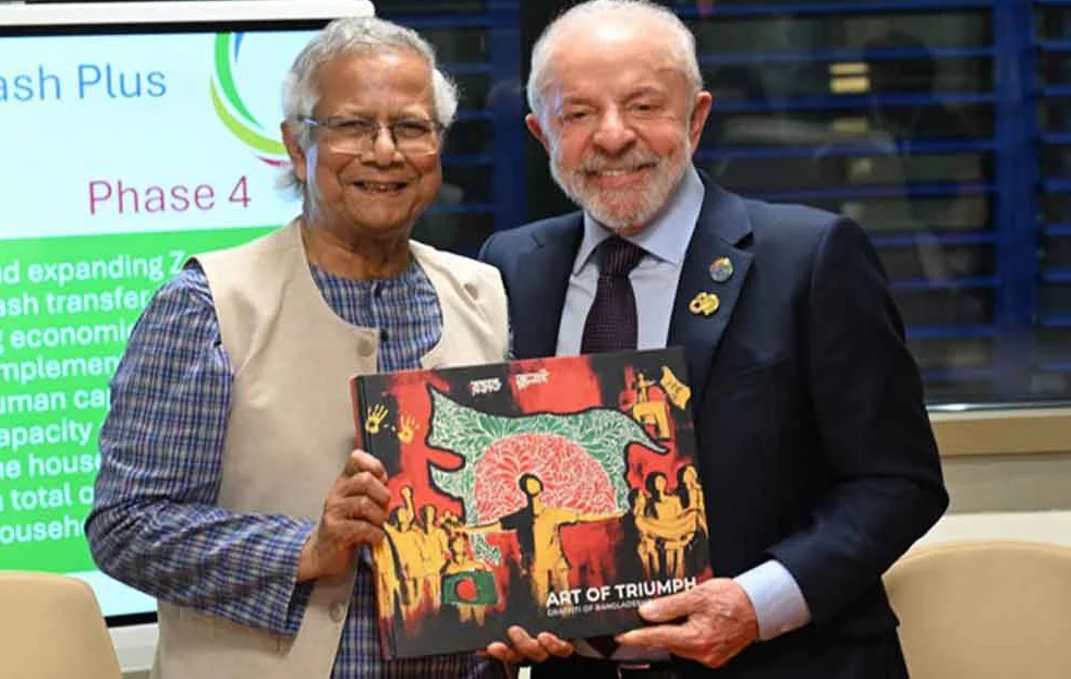 প্রধান উপদেষ্টা ড. মুহাম্মদ ইউনুস ও ব্রাজিলের প্রেসিডেন্ট লুইজ ইনাসিও লুলা দা সিলভা। ছবি: সংগৃহীত।