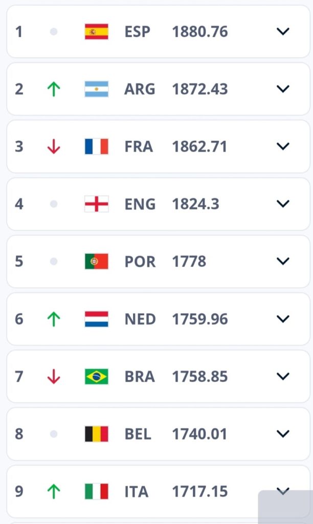 র‍্যাঙ্কিংয়ে এক ধাপ এগিয়েছে আর্জেন্টিনা ও বাংলাদেশ