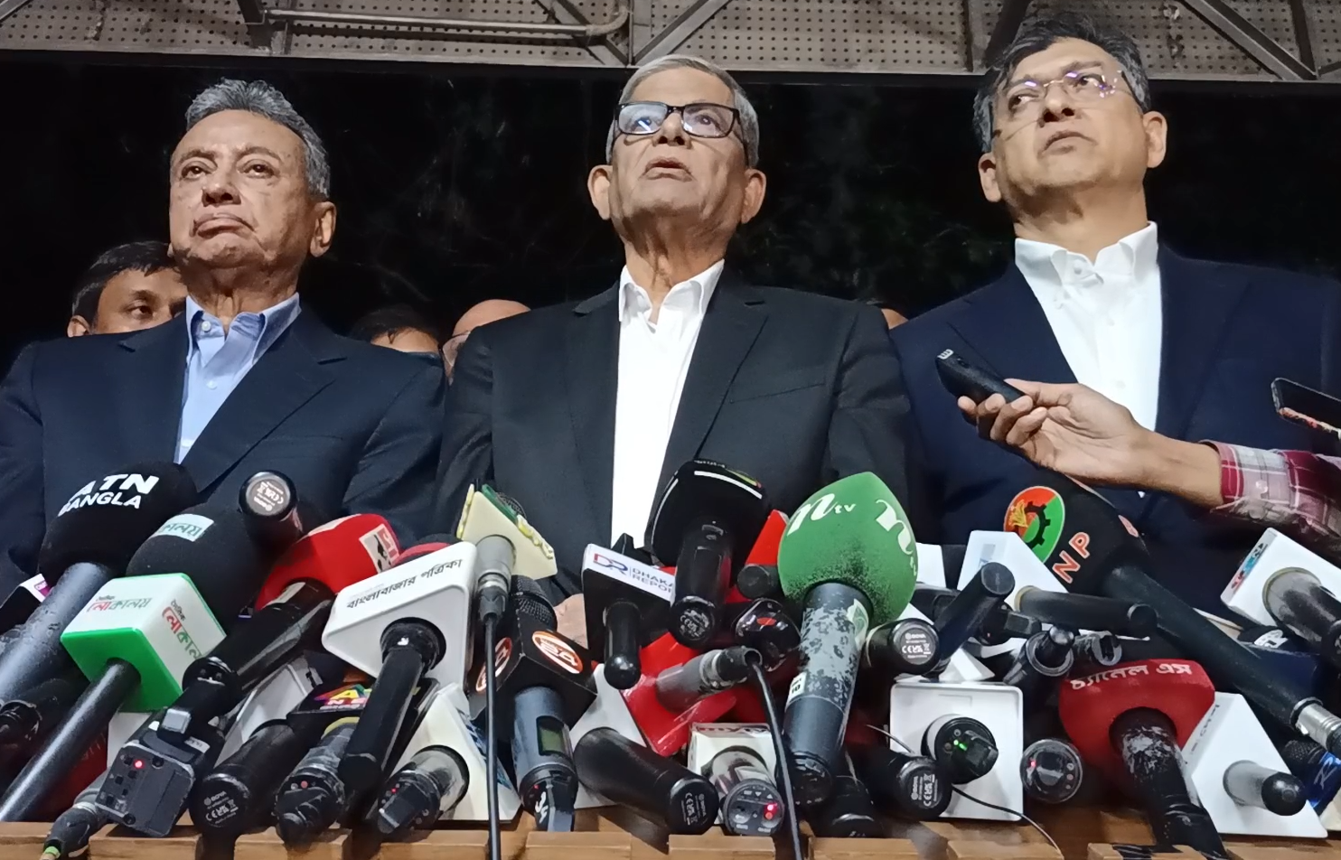 প্রধান উপদেষ্টার সঙ্গে বৈঠক শেষে গণমাধ্যমে কথা বলেন মির্জা ফখরুল ইসলাম আলমগীর। ছবি: ক্যাপটেন্স টিভি।