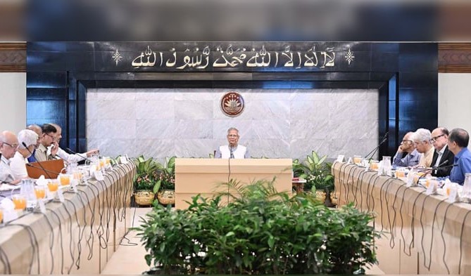 বৃহস্পতিবার উপদেষ্টা পরিষদের বৈঠকের পরে রাজধানীর ফরেন সার্ভিস একাডেমিতে ব্রিফিংয়ে, উপদেষ্টা পরিষদের বৈঠকের সিদ্ধান্ত জানান আইন উপদেষ্টা অধ্যাপক আসিফ নজরুল ও প্রধান উপদেষ্টার প্রেস সচিব শফিকুল আলম।