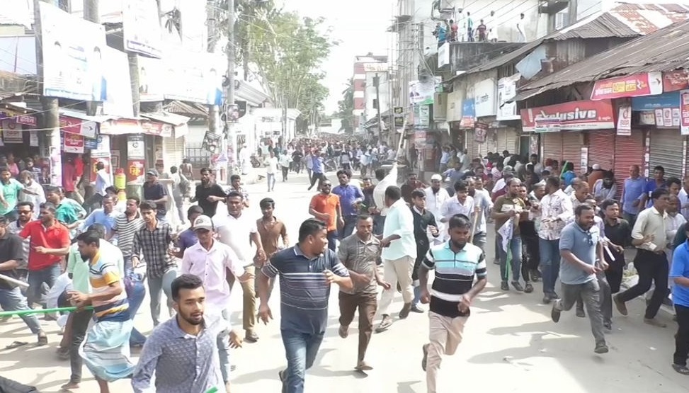 অন্যদিকে মহাজনপট্টিতে জেলা বিএনপির কার্যালয়ের সামনে সমাবেশ শেষে একদল নেতাকর্মী মিছিল নিয়ে বের হন। পরে নতুন বাজার পৌর ভবনের সামনে এলে উভয় পক্ষের মধ্যে ইটপাটকেল নিক্ষেপ ও ধাওয়া-পাল্টা ধাওয়ার ঘটনা ঘটে। একপর্যায়ে সংঘর্ষে জড়িয়ে পড়ে উভয় পক্ষ। এতে অন্তত ৫০ জন আহত হন। আহতরা সদর হাসপাতালসহ বিভিন্ন হাসপাতালে চিকিৎসা নিয়েছেন।