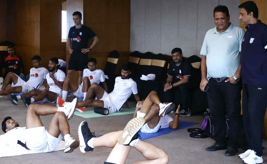 - মাঠে অনুশীলনে যেতে পারেনি বাংলাদেশ দল। হোটেলেই সেরে নিতে হয় স্ট্রেচিং। ছবি: সংগৃহীত।