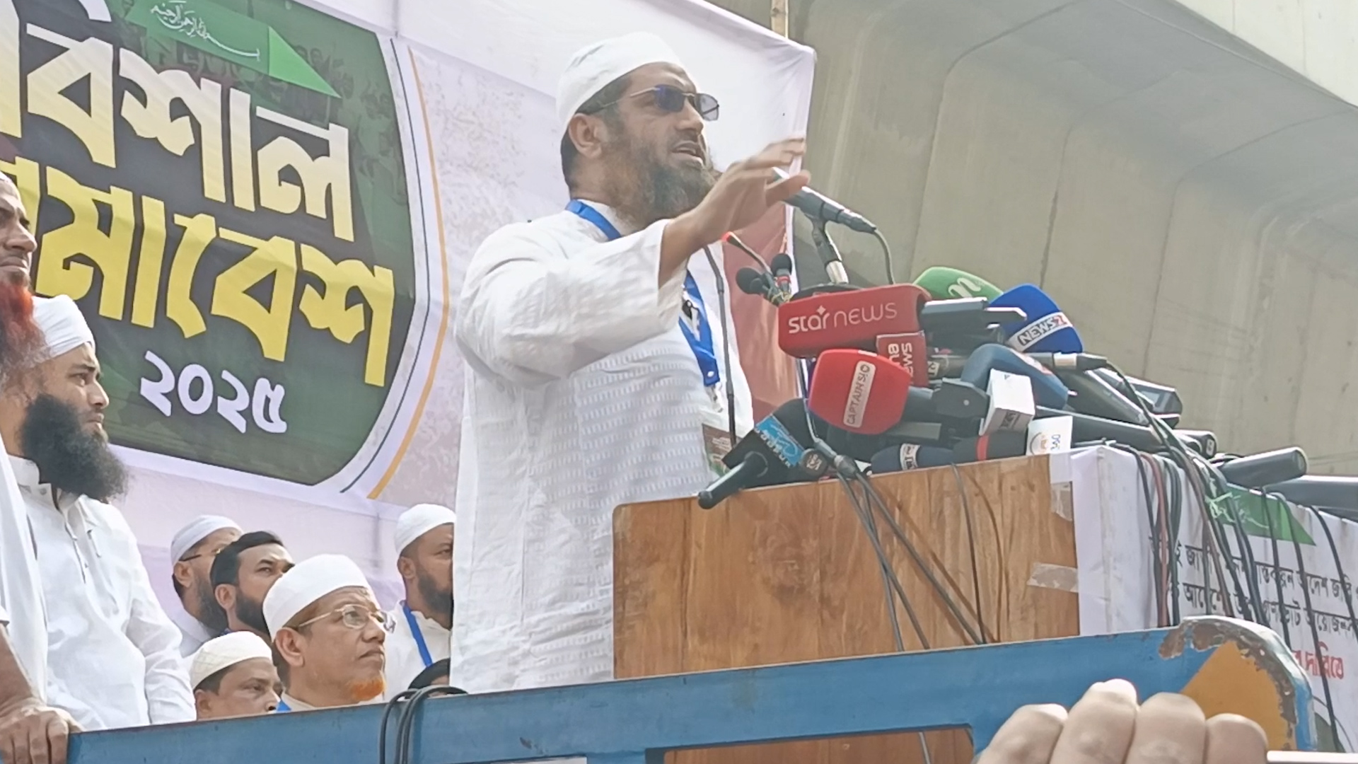 মঙ্গলবার (১১ নভেম্বর) বিকেলে রাজধানীর পুরানা পল্টন মোড়ে ৫ দাবিতে ৮টি রাজনৈতিক দলের সমাবেশে এসব কথা বলেন তিনি। খেলাফত মজলিসের আমির বলেন, যারা জুলাই সনদের গণভোট জাতীয় সংসদ নির্বাচনের আগে অনুষ্ঠানের ক্ষেত্রে বিরোধিতা করছেন আমরা তাদের সমস্যার কথা জানতে চাই। কোনো যুক্তি নেই। তারা জুলাই সনদের বাস্তবায়নকে ঠেকিয়ে দিয়ে বাংলাদেশে আবার ফ্যাসিবাদ কায়েম করার ষড়যন্ত্র করছে।